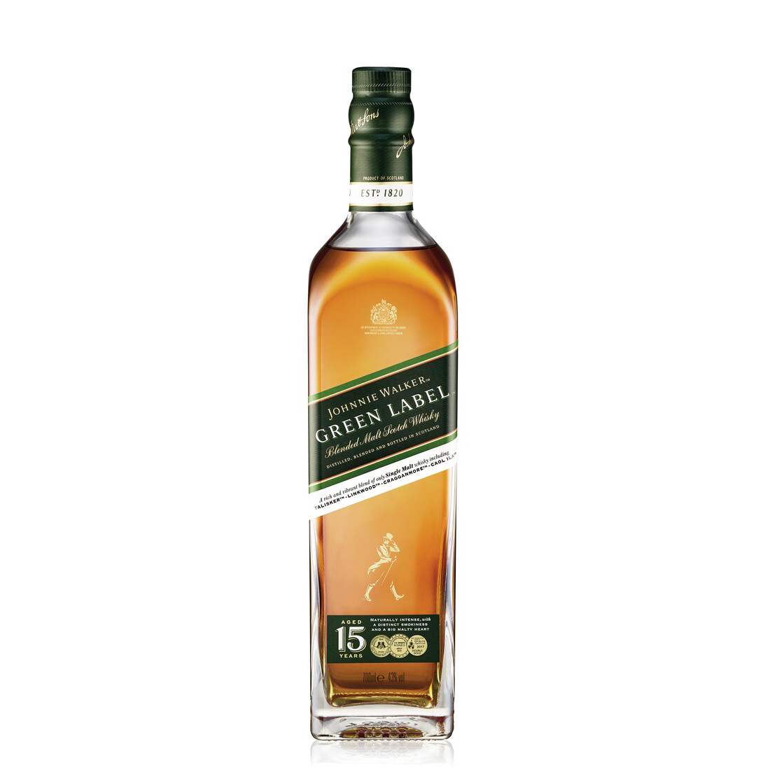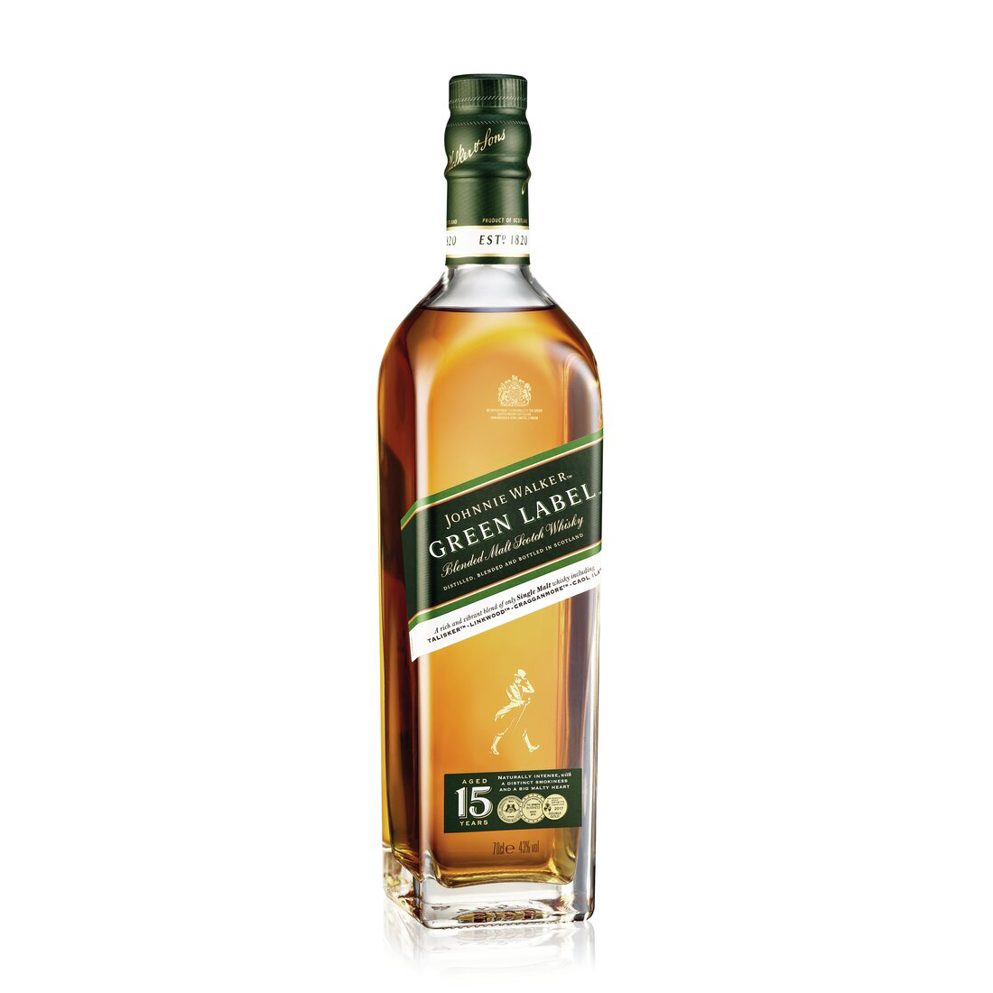 Johnnie Walker Green Label je stvořena pro ty, kteří hledají whisky s vyváženou kombinací ovocných, dřevitých a kouřových tónů. Díky svému sofistikovanému chuťovému profilu je ideální k vychutnání čistá, nebo s kapkou vody, která ještě více rozvine její komplexní charakter.